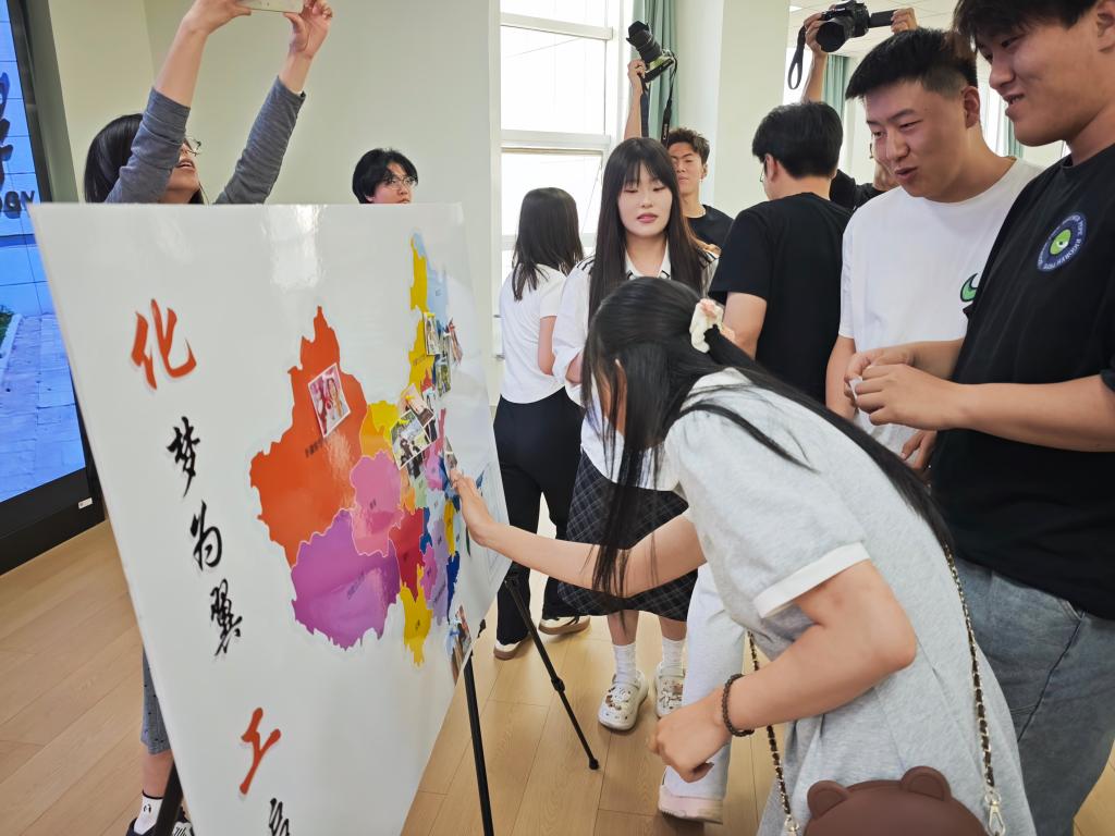 座谈会尾声,毕业生将代表自己的图片标记在中国地图上,这一充满仪式感的举动,寓意着他们将以化工学院为起点,“化” 梦想为羽翼,“工”同开启人生新征程,奔赴祖国各地。与会老师们为毕业生赠送了纪念品,承载着学院对毕业生的美好祝福与殷切期望。