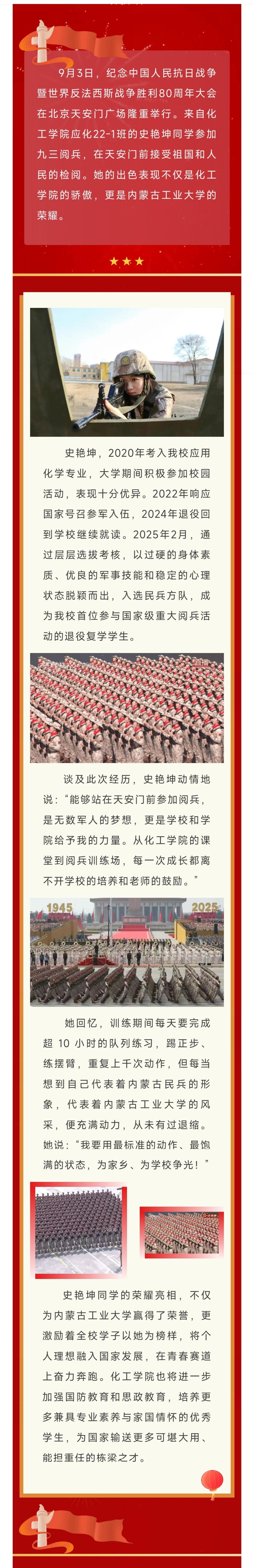 骄傲!我院史艳坤参加九三阅兵