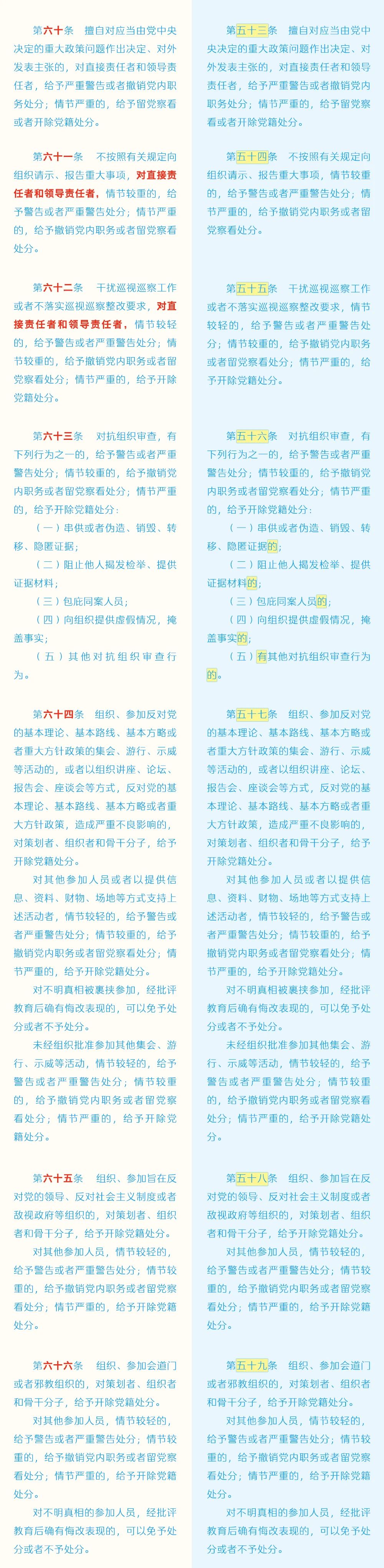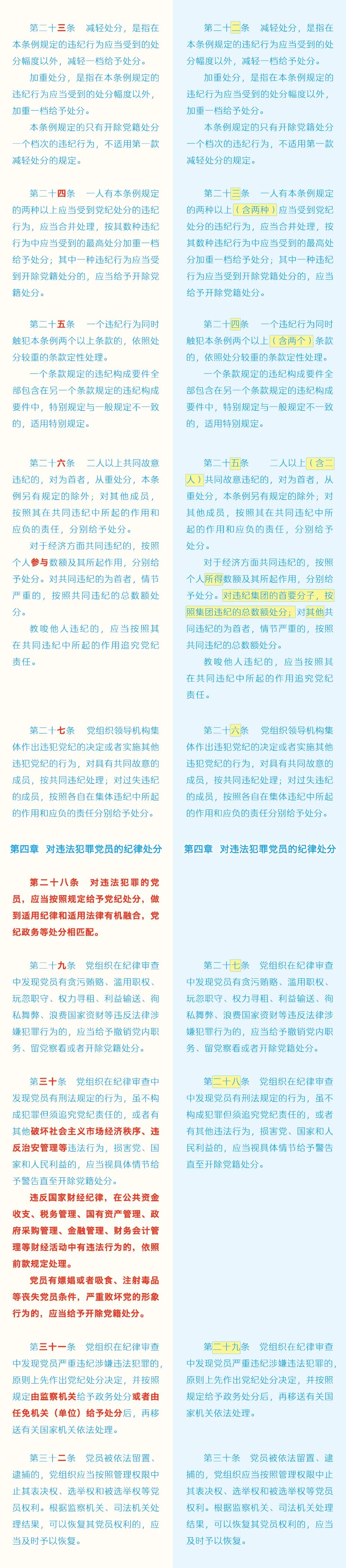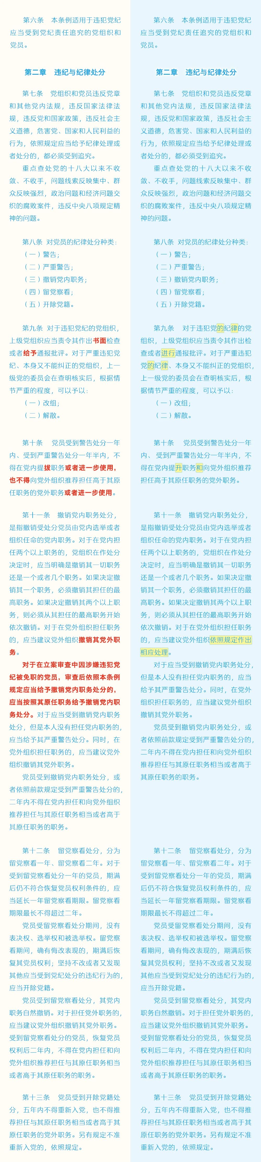 《中国共产党纪律处分条例》修订条文对照表
