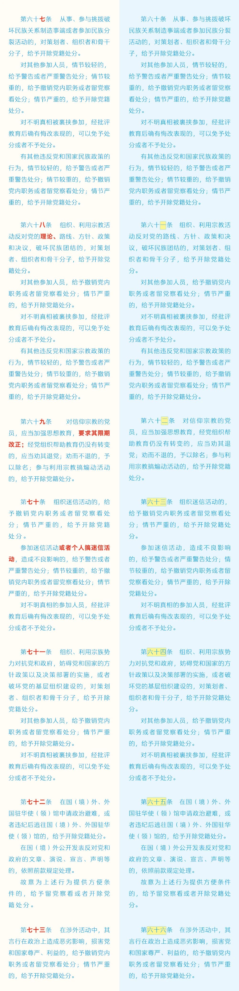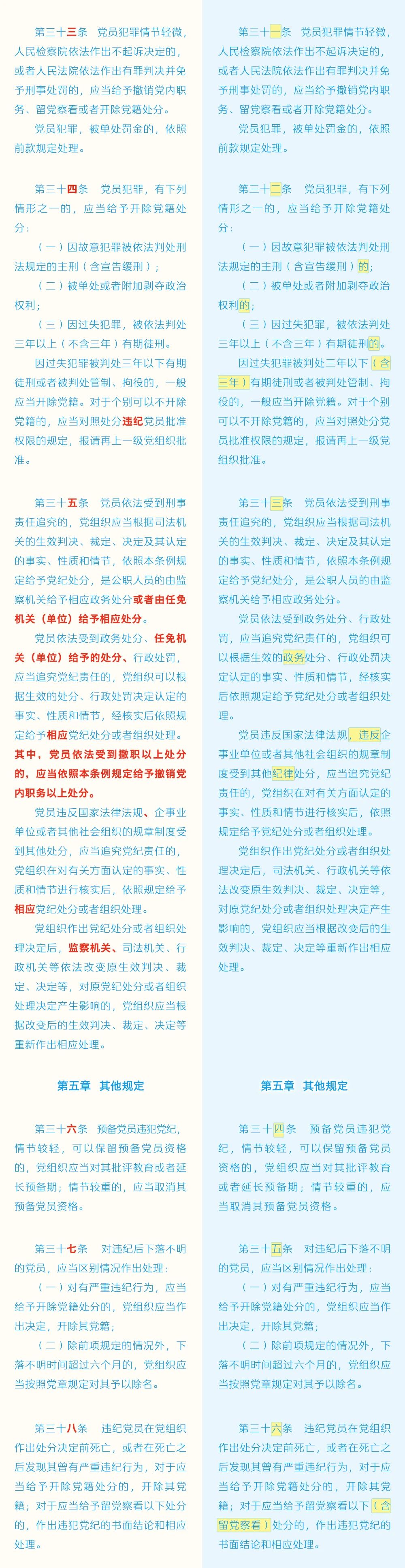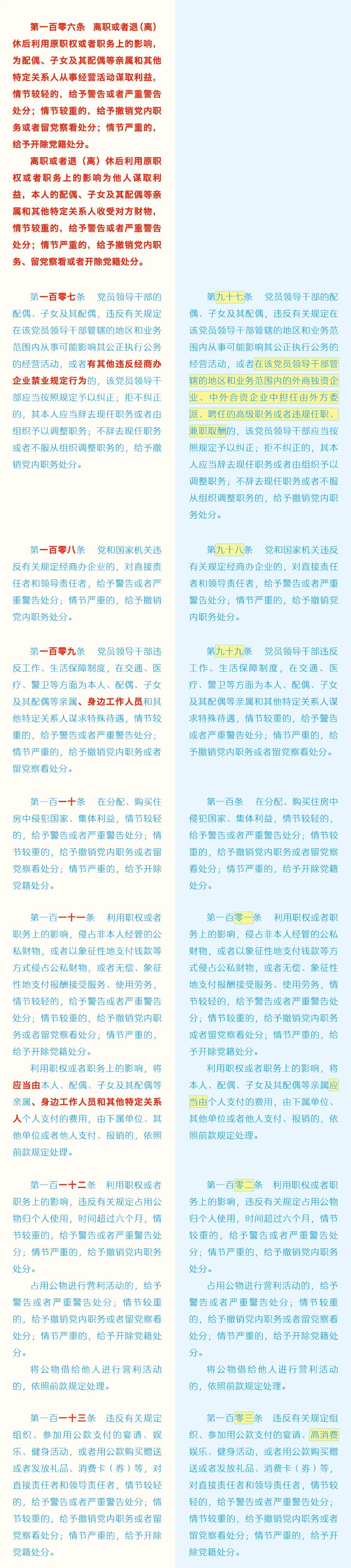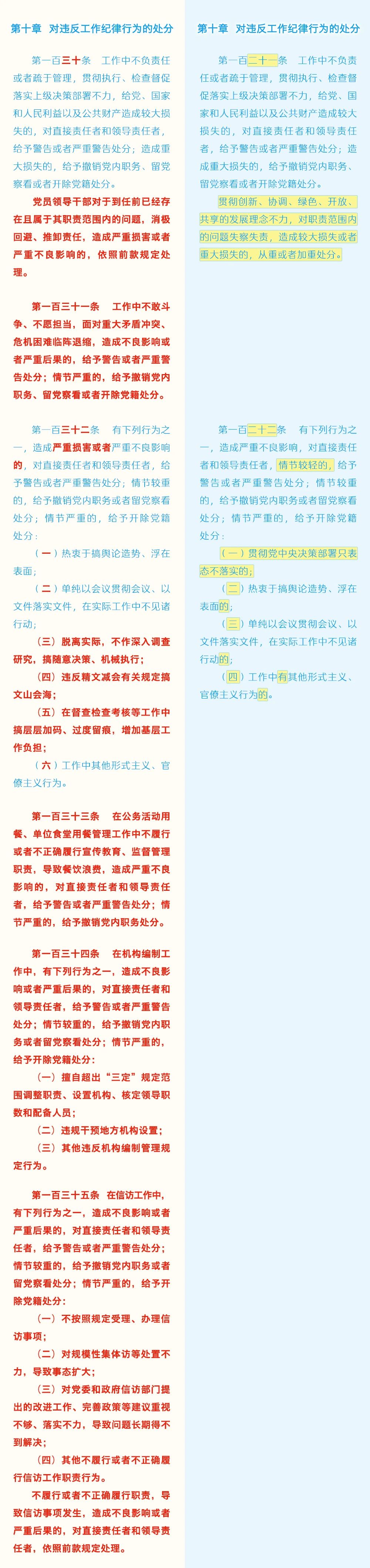 《中国共产党纪律处分条例》修订条文对照表
