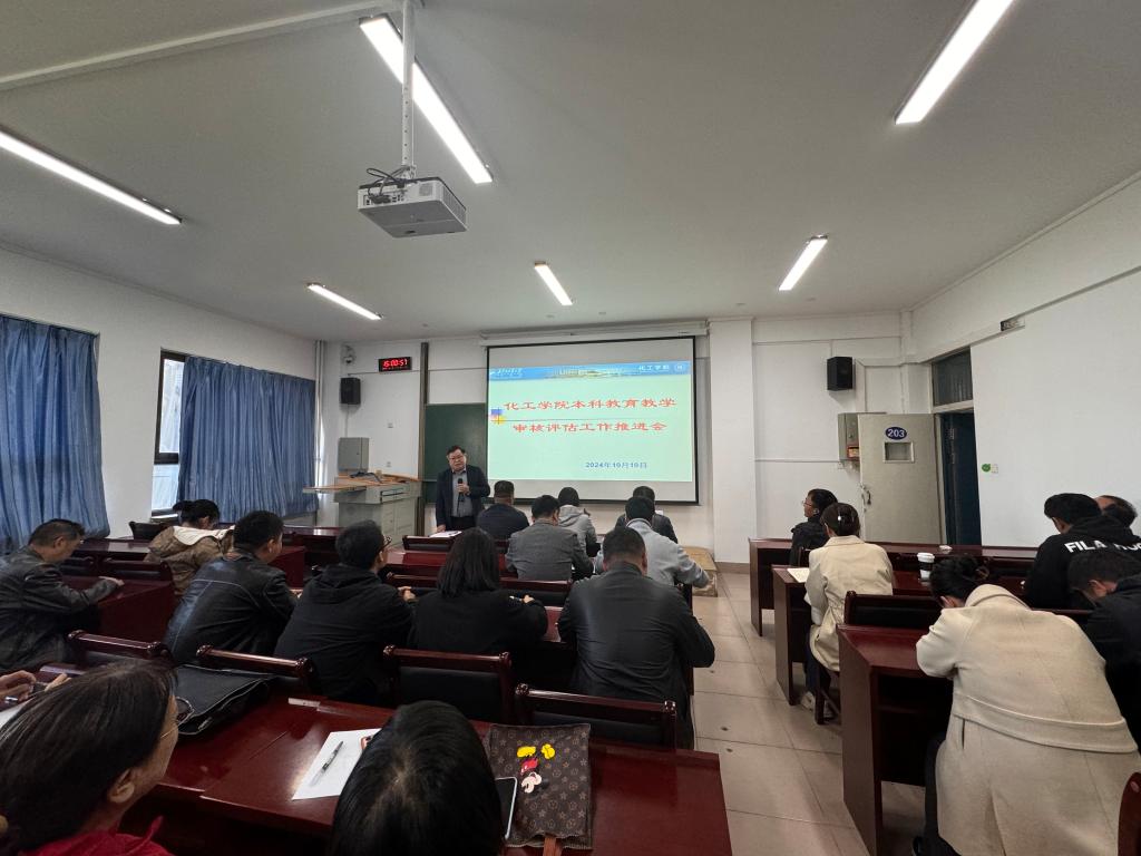 为进一步落实立德树人根本任务,巩固人才培养中心地位,全力迎接新一轮本科教育教学审核评估,2024年10月10日,化工学院召开本科教育教学审核评估推进会。学院领导班子成员和全体教师参加会议。会议由院长白杰主持。